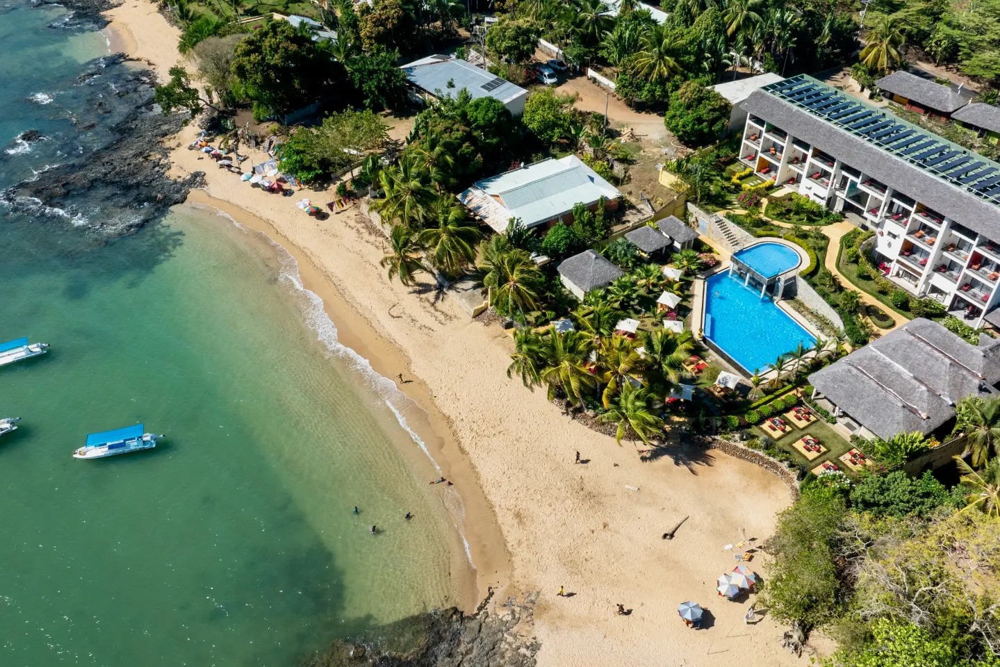 L’Exora Beach Hotel si trova ad Ambaro, sulla costa ovest di Nosy Be, in una posizione tranquilla ideale come base per esplorare l’isola e le sue isole circostanti. È un hotel moderno, sviluppato su più livelli, con vista aperta sulla baia e tramonti spettacolari.