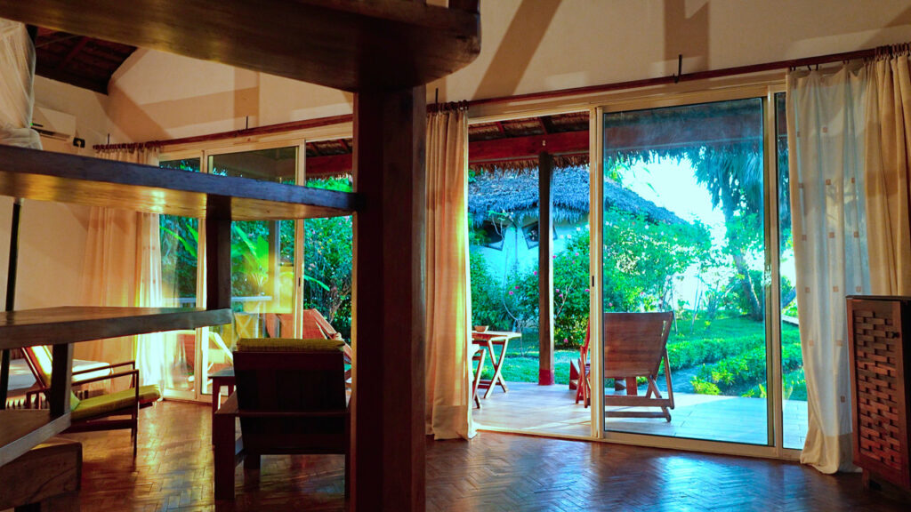 Con poche camere spaziose – tra cui suite, camere vista mare e un bungalow indipendente – offre un’atmosfera tranquilla e riservata, ideale per chi cerca un soggiorno lontano dal turismo di massa. Le ampie vetrate e le verande permettono di godere appieno dei panorami e dei tramonti sull’oceano.